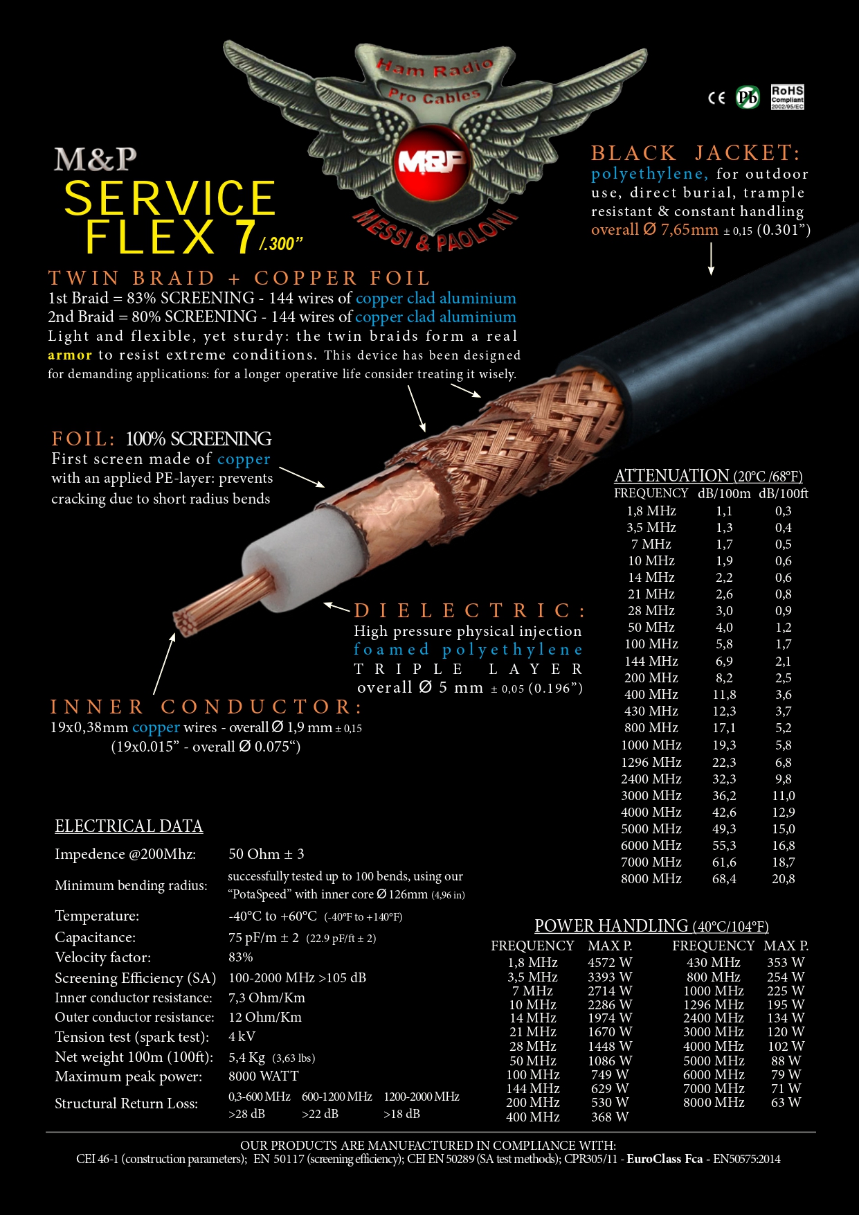 • Incredibly sturdy, but also light and flexible. Double braid with additional copper foil which form a real armor to resist extreme conditions. (This device was designed for demanding applications, for greater operational longevity use it wisely.)